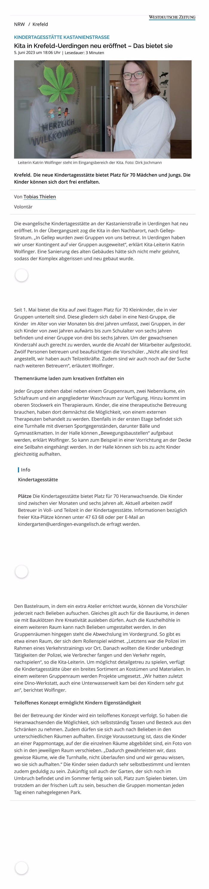 Westdeutsche Zeitung: Kita in Krefeld-Uerdingen neu eröffnet - Das bietet sie