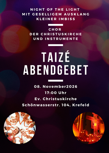 Night of the Light - Abendgebet mit Gesängen aus Taizé - Ausklang mit Imbiss